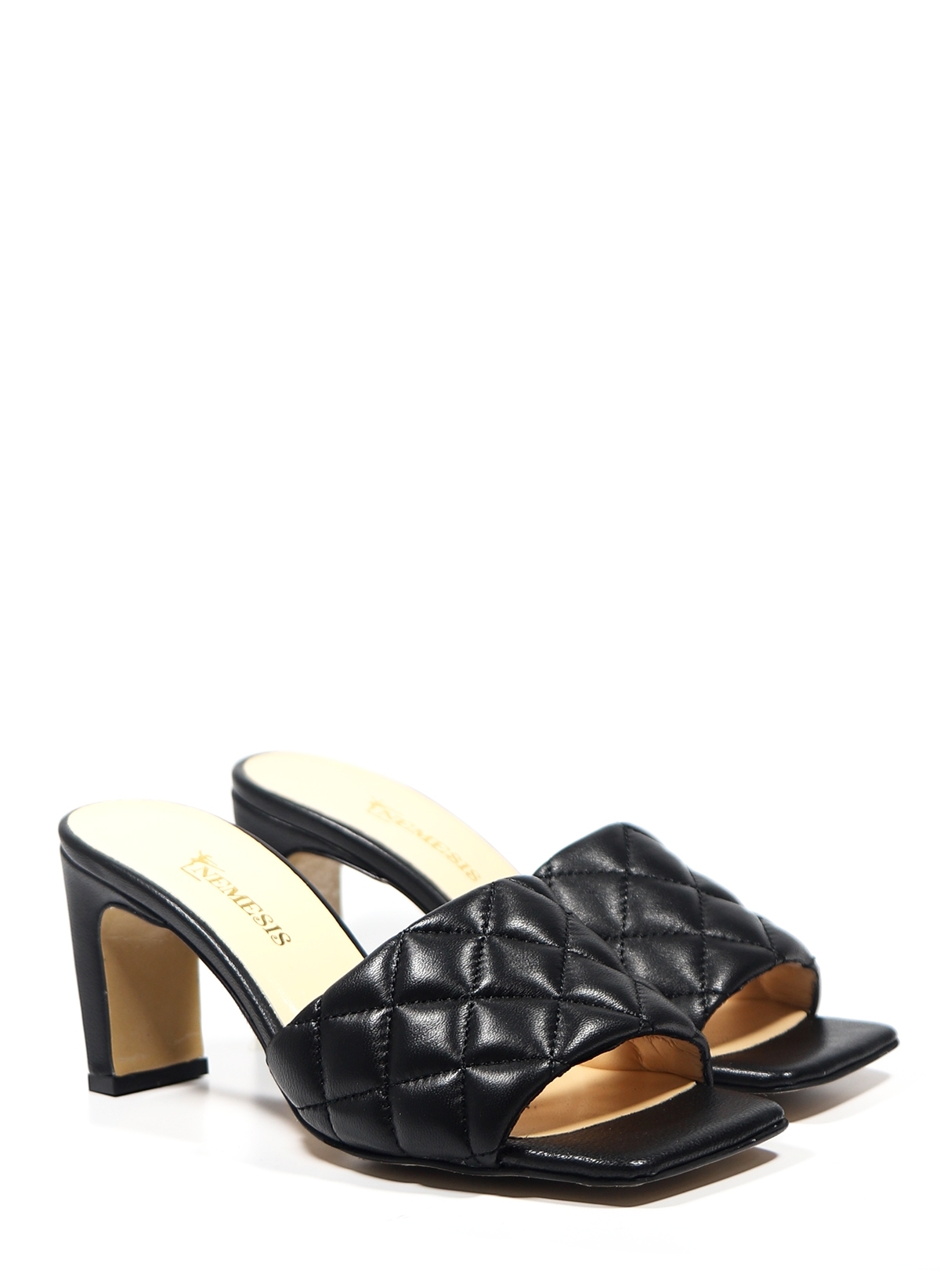 Ramse Genuine Leather Women's Heeled Slippers Black